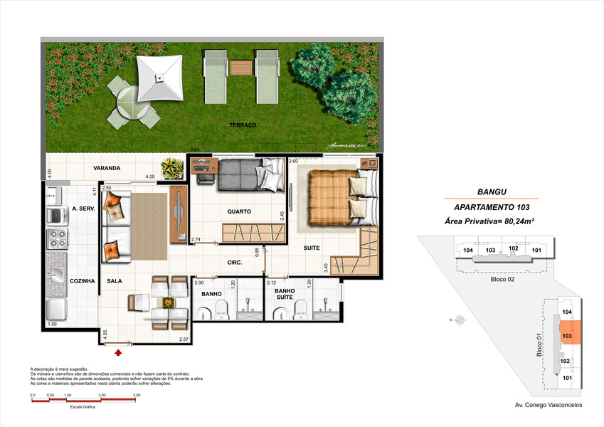 Condomínio residencial composto por 2 blocos de 5 pavimentos sendo 8 unidades por andar. No térreo possui 8 unidades residenciais com Garden (terraço descoberto), área de lazer e vaga de garagem. Localizado no bairro de Bangu. Arquiteto Responsável: Marcelo Oliveira dos Santos CAU: A40691-0 Engenheiro Responsável: Adilson Rio Branco C.R.E.A: RJ-19791367/D